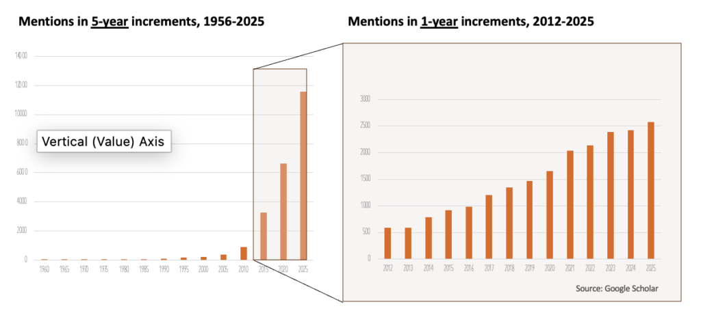 From when Theron G. Randolph introduced “Food Addiction” into academic literature in 1956, until the institute’s founding, fewer than a thousand studies mentioned the term. This is according to Google Scholar, which focuses on journal articles, theses, technical reports, etc., but leaves out news, editorials, and books.